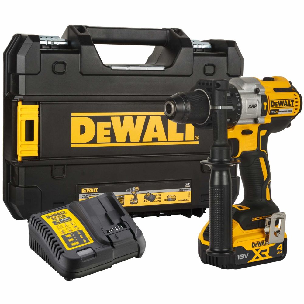 Дрель-шуруповерт DEWALT DCD996M1, 18 В, 2250 об/мин, 38250 уд/мин, с АКБ 4 Ач и ЗУ, в кейсе TSTAK (DCD996M1-QW)