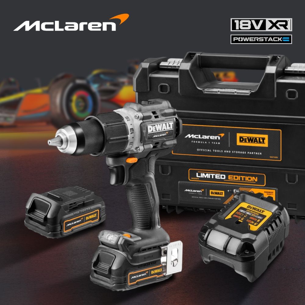 Ударная дрель-шуруповерт DEWALT McLaren Limited Edition DCD85ME2GT, 18 В, 2000 об/мин, с 2 АКБ 1.7 Ач и ЗУ, в кейсе TSTAK
