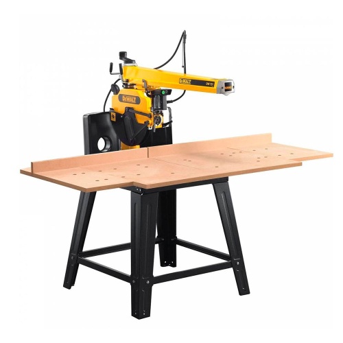 Радиально-консольная пила DEWALT DW721KN с асинхронным двигателем, 2000 Вт, 220 В, 3000 об/мин, диск 300 мм, мах ширина при распиловке 870 мм, мах глубина 90 мм, поперечный рез 507 мм, автовозврат, тормоз диска, вес 115 кг, стол на ножках.