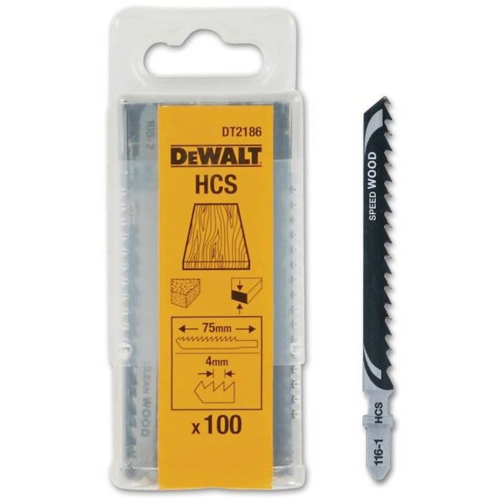 Пилка для лобзика DEWALT DT2186, по дереву из высокоуглеродистой стали, HCS, 100 x 68 x 4.0 x 60 мм, T144D, 100 шт.