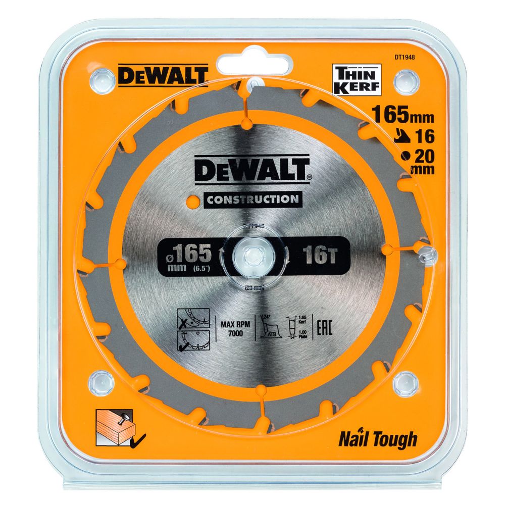 Диск пильный по дереву DEWALT CONSTRUCTION, 165х20х1 мм (DT1948-QZ)